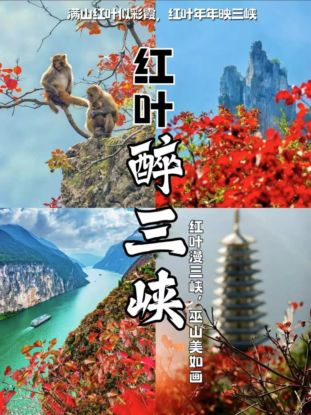 当秋风轻拂,三峡两岸山峦间,红叶似火,正热烈地燃烧着。它们像是大自然打翻的调色盘,晕染出一幅绝美的山水画卷。